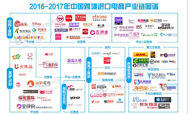 2016-2017中国跨境进口电商市场“百花齐放”,初步形成“产业链闭环”。针对纷繁复杂的跨境进口电商供应链条,报告通过系统梳理,披露了《2016-2017年中国跨境进口电商产业链图谱》。