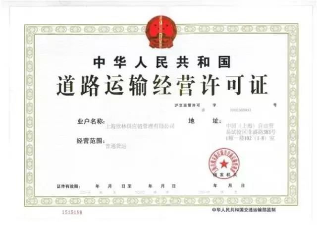 上海欣林供应链管理有限公司二O一六年四月四日获批《道路运输经营许可》