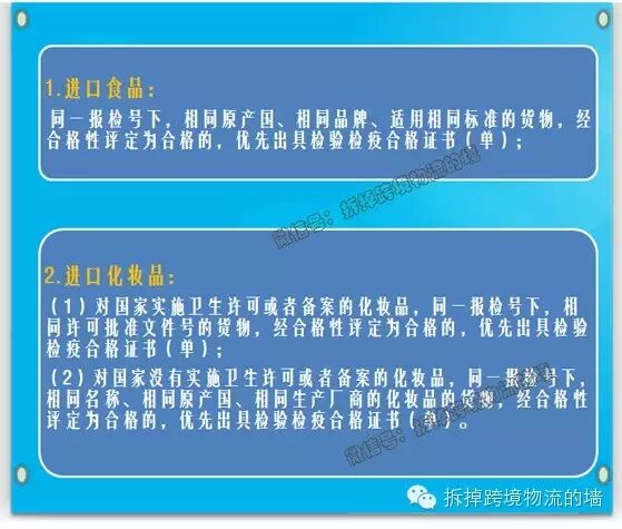 自2015年8月1日起,在上海自贸区口岸,进口食品化妆品企业或其代理人可自愿向检验检疫机构申请对同一报检批进口货物实施分单出证,以加快进口通检速度:
