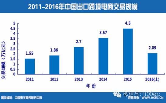2016年上半年,中国出口跨境电商交易规模2.09万亿元。